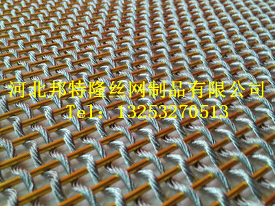 金属装饰网,金属幕墙网采用优质304或者316不锈钢丝编织,径丝为不锈钢丝绳,2-4根为一组,每隔一定的距离一组,此距离和绳的粗细可以根据客户的要求定做,纬丝是单根的不锈钢杆,也是每隔一定的距离一根,此距离客户决定。长度方向不限。是现代化建筑表面理想的装饰材料。